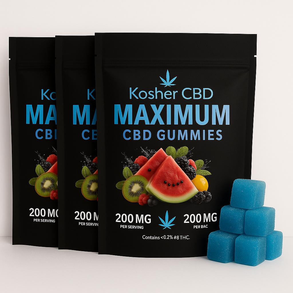 Each gummy square packs a powerful 200 mg of CBD, perfect for those who know their way around CBD—just take it slow! KOSHER CBD GUMMY SQUARES serve up all the goodness of CBD in a tasty, chewy treat crafted in small batches. With flavors like blue raspberry, lemon tart, and wild berry, each bite is a flavor adventure. Made with fish gelatin and KOSHER certified, they blend cane sugar, corn syrup, hemp extract, and natural flavorings into a chewy delight. Our Full Spectrum extract delivers a mix of hemp’s beneficial cannabinoids with only trace THC below 0.3%. Start with one gummy and see how it vibes with you!