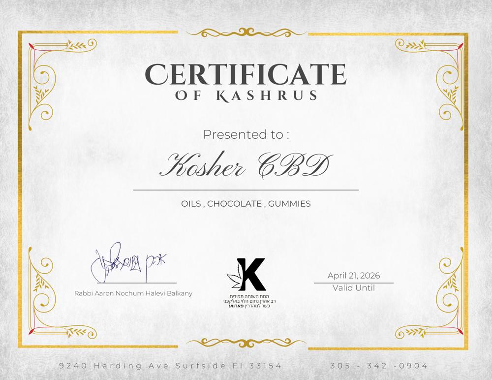 KOSHER CBD 2000mg CBD features FULL SPECTRUM CBD sourced from slow-grown hemp harvested at peak bloom, packed in a compact 1oz bottle.