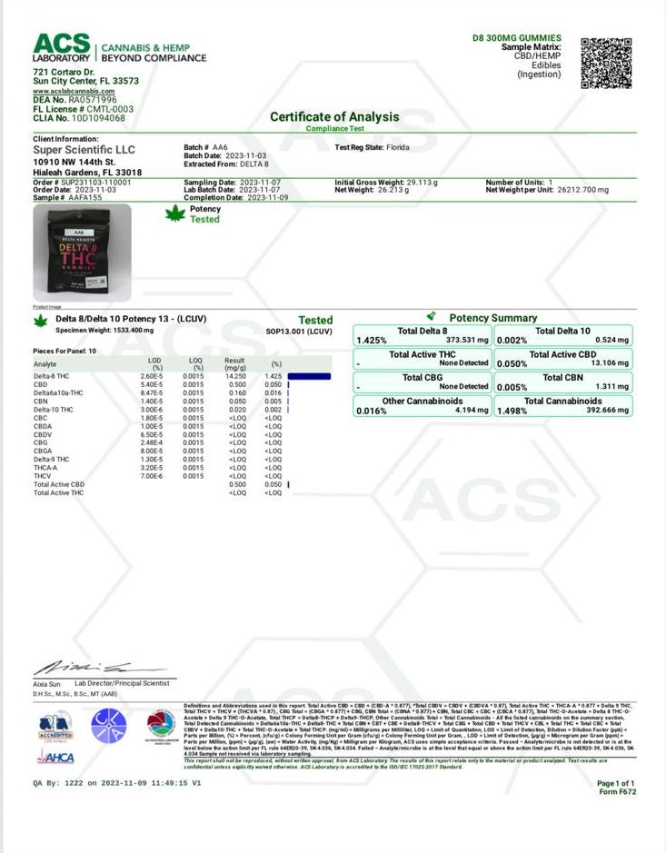 Before purchasing DELTA 8 GUMMIES (Pack of 3), be sure to confirm if d8 is legal in your state. These KOSHER DELTA 8 GUMMY SQUARES contain 30mg per square and 10 gummies per bag. Made with cane sugar, light corn syrup, gelatin (fish), and other natural ingredients, these gummies offer a fruity, chewy treat with all the benefits of delta 8. From blue raspberry to wild berry, each bite is bursting with flavor. Remember, one square is all you need, but feel free to adjust your dosage according to how you feel. Plus, they're MEHADRIN KOSHER certified! Please note, if your state does not allow delta 8, you will not be able to place an order with this item in your cart. And as always, these statements have not been evaluated by the Food and Drug Administration.